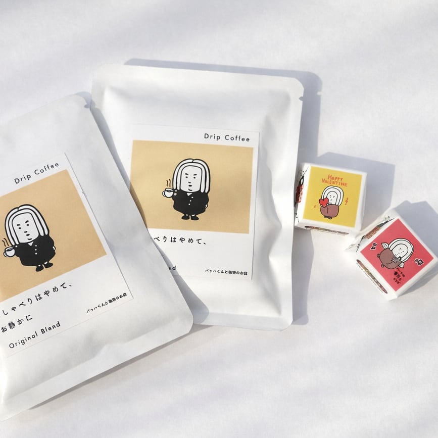"オリジナル珈琲のドリップパックとバッハくんチロルチョコのセット"