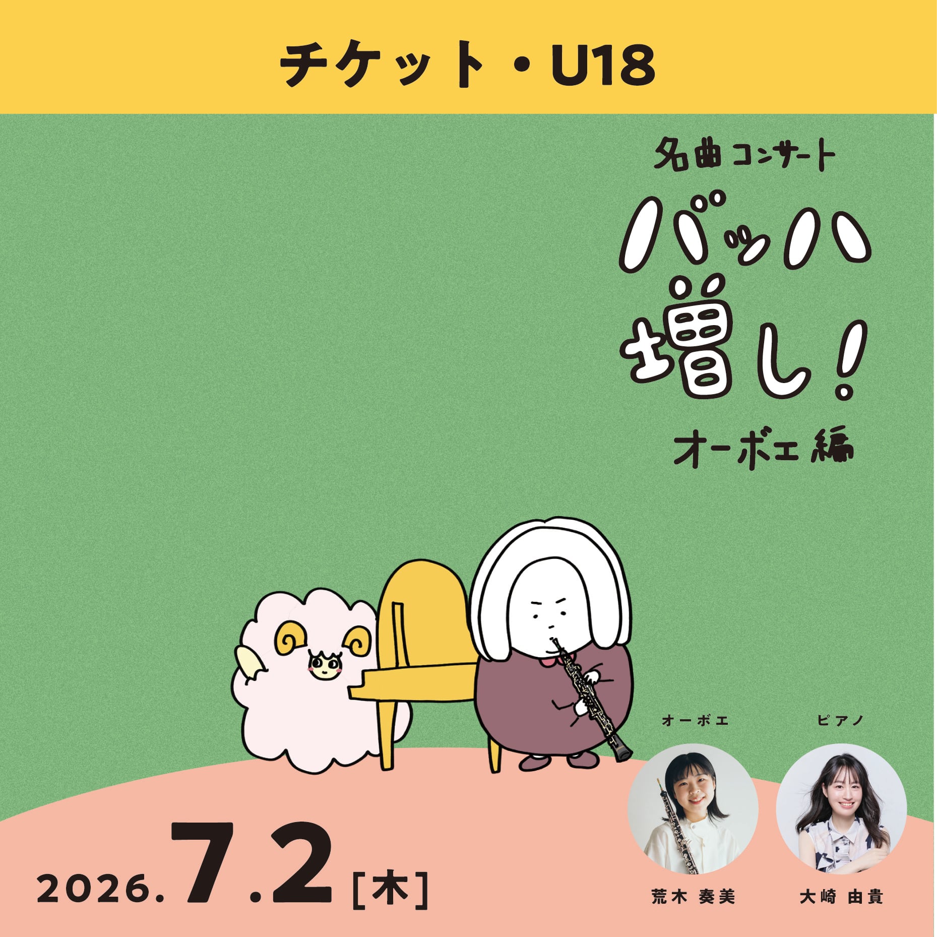 【チケット/U18】名曲コンサート「バッハ増し!」オーボエ編(荒木奏美・大崎由貴)